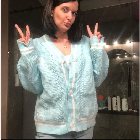 1989 Version Embroidered Cardigan Sweater, Valentine Gifts for Swifties Oversized Blue Knitted Cardigan